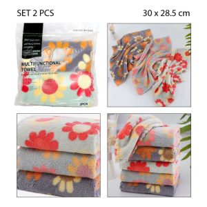 TOALLA DE MICROFIBRA MULTIUSO CON DISEÑO SET DE 2PCS -30X28.5CM